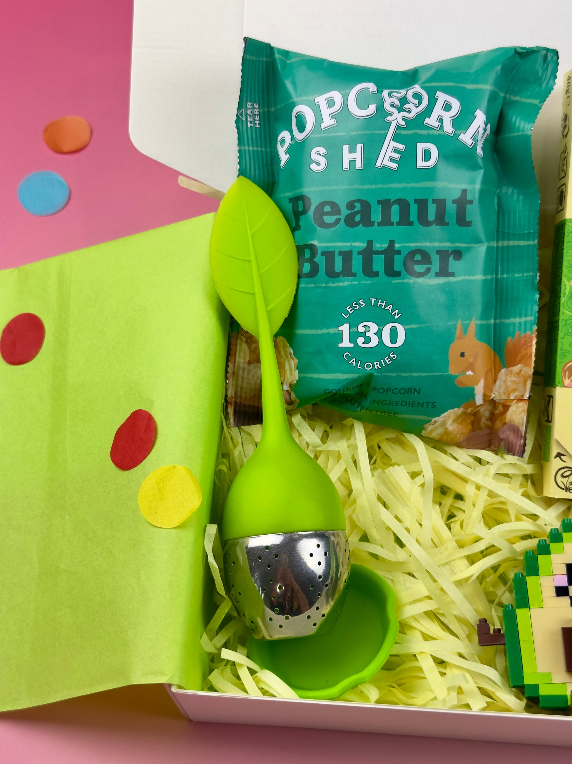This cheerful “You Guac My World” box is packed with treats for anyone who loves a little fun with their snacks. With Peanut Butter popcorn, a vegan hazelnut chocolate bar, uplifting “Geluksthee,” a cute avocado mini building block, an avocado tea infuser set, and a fridge magnet that literally guacs, it’s a playful pick for birthdays, thank-yous, new beginnings, or “just because” moments. 🥑✨